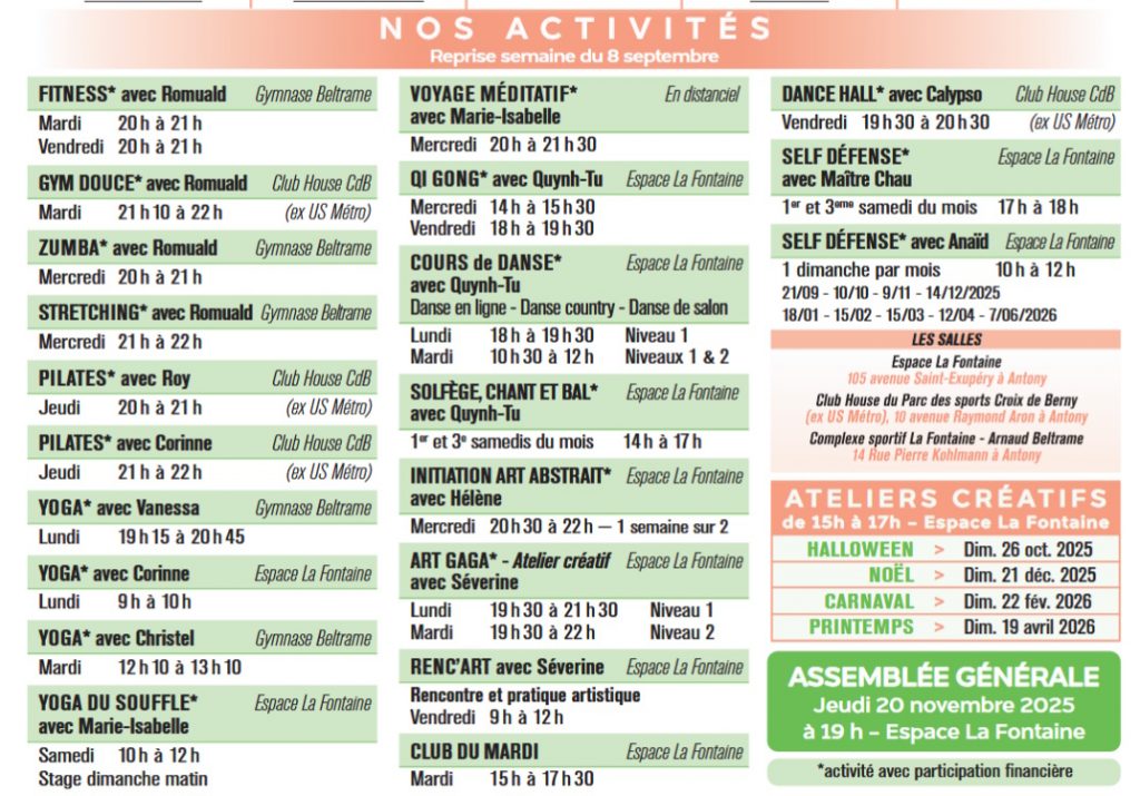 L’US Metro devient le Parc des Sports de la Croix de Berny (Salle Club House CdB) donc les activités continuent sur le même lieu, le nom change juste !