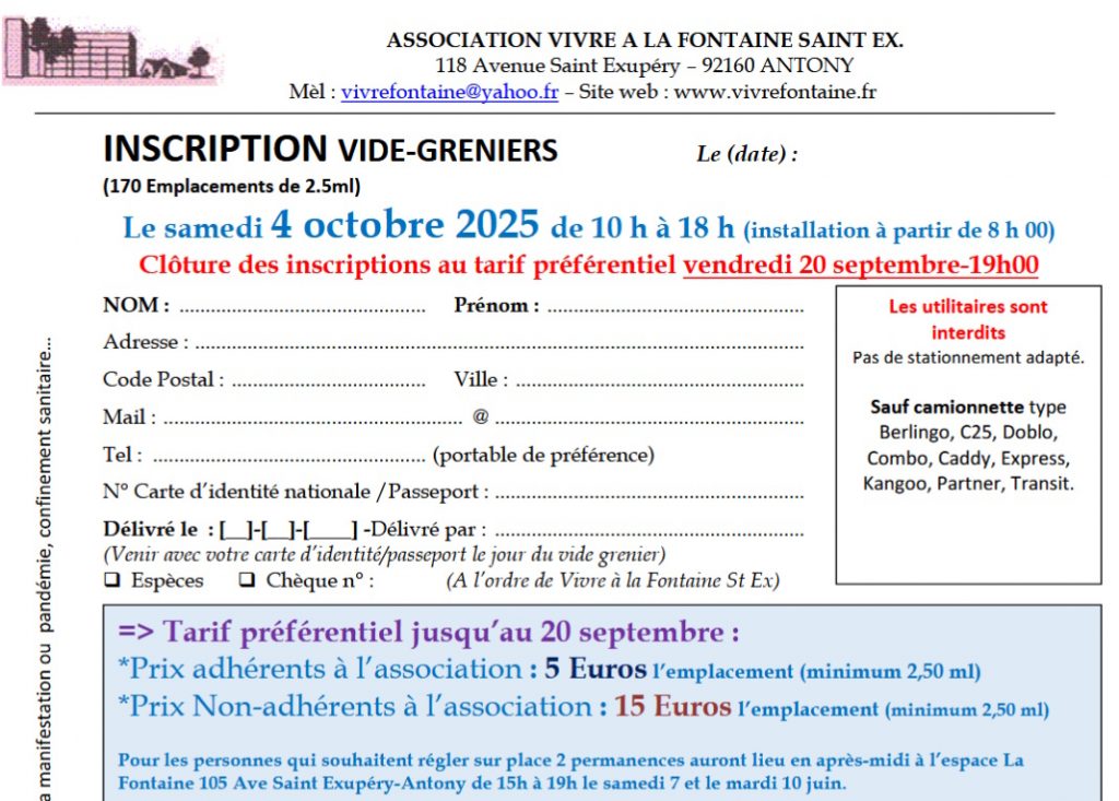 comme indiqué dans les pages internet ou sur les affiches des activités visible au 105 av St-Exupery.