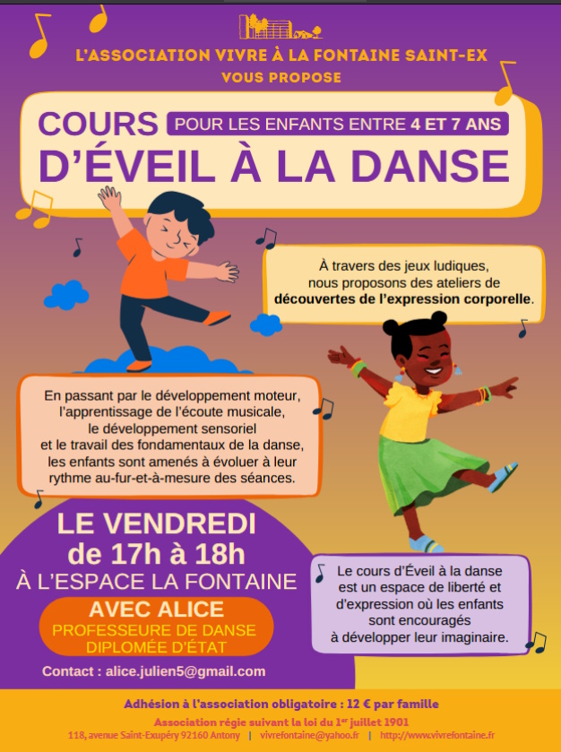 comme indiqué dans les pages internet ou sur les affiches des activités visible au 105 av St-Exupery.