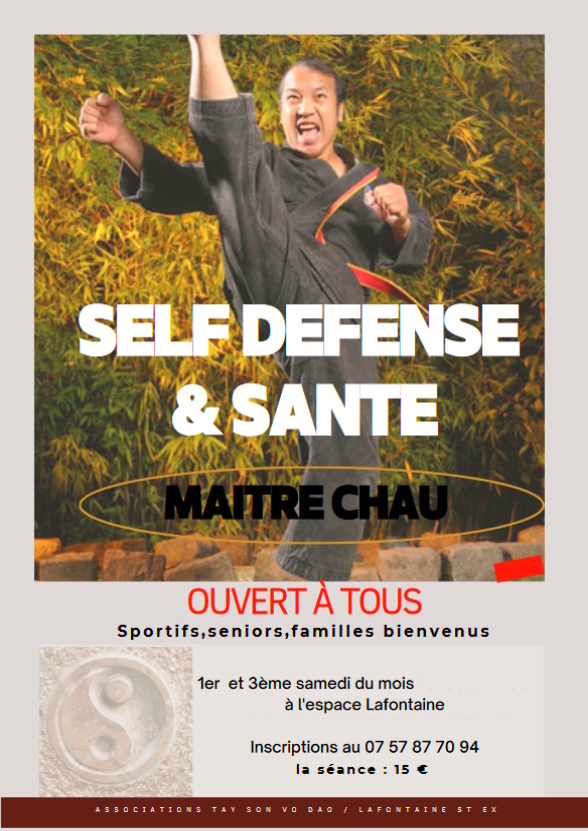 Self-Defense du samedi Maitre Chau Self-Defense du samedi avec Maitre Chau de 17H à 18 H 15 euros/séance à payer directement à Maitre Chau cours géré par Barbara